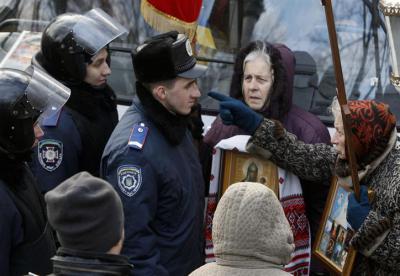 Activistas opositores bloquean la salida de autobuses con policías que se iban a desplegar en Kiev