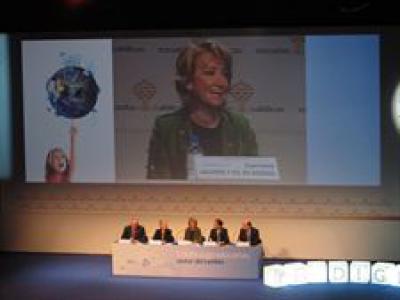 Durante su intervención en el XI Congreso de Escuelas Católicas que se celebra en Madrid, la presidenta madrileña ha subrayado que "las crisis son oportunidades de cambiar aquello que no se había cambiado en los tiempos de bonanza y que se cambia para mejor cuando llega la crisis".