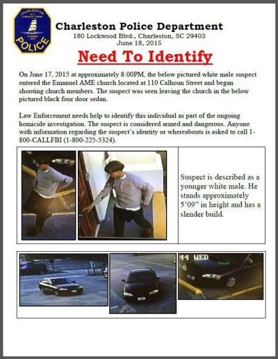 La Policía de Charleston, en el estado de Carolina del Sur (Estados Unidos), ha difundido este jueves imágenes que corresponden al joven que ha abierto fuego en el interior de una iglesia de la comunidad afroamericana y ha matado a nueve personas.