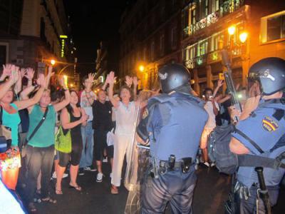 Los momentos de máxima tensión de la marcha, convocada en las redes sociales y que carece de autorización por parte de la Delegación del Gobierno de Madrid, se han registrado cuando los agentes de las Unidades de Intervención Policial (UIP) o antidisturbios han cargado en las proximidades de la sede del PSOE en Ferraz y en Neptuno contra los manifestantes.