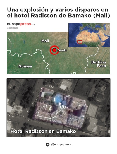 Un asesor ministerial, Amadou Sangho, ha confirmado a la cadena francesa BFMTV que los asaltantes ya no mantienen a ninguna persona retenida. Inicialmente, las autoridades informaron de que había unos 170 rehenes en el interior, entre ellos numerosos extranjeros.
