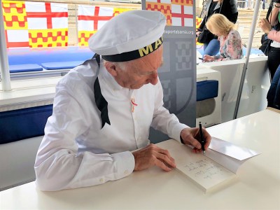 Firma su libro '¡Viva Tabarnia!' en un barco para no pisar suelo catalán