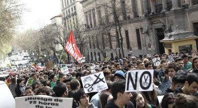 Tras una pancarta en la que se puede leer 'No a la contrarreforma franquista. Becas sí, tasas No, Wert dimisión', tres centenares de estudiantes, aproximadamente, han iniciado la marcha acompañados de numerosos trabajadores de la planta de Coca-Cola de Fuenlabrada (Madrid) que reclamaban 'No al cierre de fábricas de Coca-Cola'.