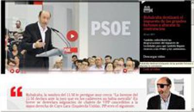 "Rubalcaba, la sombra del 11-M te persigue muy cerca: La forense del 11-M declara ante la juez que en los cadáveres no había metralla. En breve se desvelara asignación de chalets de Viviendas con Protección Pública (VPP) concedidos a la mano derecha de Cayo Lara (Izquierda Unida)" es el mensaje que los hackivistas han colgado, en el que también advierte al Partido Popular de que son los siguientes.
