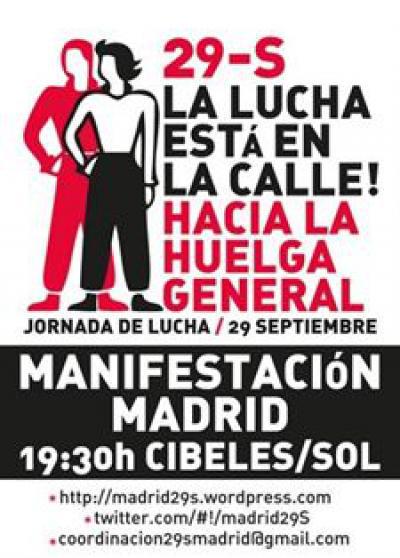Distintas organizaciones sociales y sindicales alternativas, así como distintas asambleas ciudadanas de la Comunidad de Madrid y el movimiento asambleario de Sol, han convocado para este jueves una manifestación que marchará de Cibeles a Sol "hacia la huelga general".