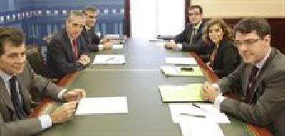El Gobierno en funciones está representado, además de por Ramón Jáuregui, por el jefe de gabinete del presidente en funciones, José Luis Rodríguez Zapatero y por el secretario de Asuntos Constitucionales y Parlamentarios, José Luis de Francisco Herrero.