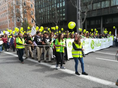 La marcha ha llegado sobre las 13.30 horas a la Puerta de Alcalá, donde se ha colocado un escenario donde el grupo Hermanos Martínez ha presentado la canción 'Que viva la vida', compuesto 'ad hoc' para celebrar el Día de la Vida, que se celebra el 25 de marzo.