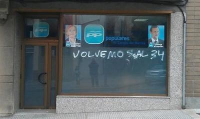 Atacan con una piedra la sede del PP en Cangas del Narcea y pintan "Volvemos al 34"