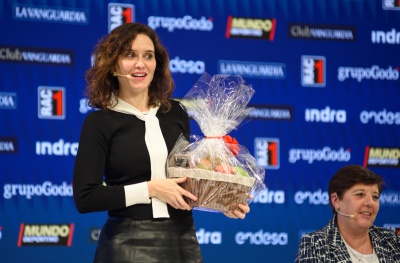 Al finalizar el acto, el adjunto a la presidencia del Grupo Godó y columnista de 'La Vanguardia', Ramon Rovira, que ha moderado el encuentro, ha regalado una cesta de fruta a Ayuso tras preguntarle: "¿A usted le gusta la fruta, o no?".