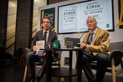 Durante su diálogo con Piqué, una mujer del público ha interpelado a Aznar por el título de su libro ('El futuro es hoy') y le ha preguntado qué significado tiene, levantando alguna sonrisa en la sala, y el expresidente ha respondido: "Es exactamente lo que estoy diciendo".