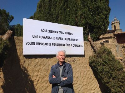 Aquí crecían tres cipreses. Unos cobardes los cortaron una noche. Quieren imponer el pensamiento único en Cataluña", reza el cartel colocado por Boadella en el exterior de su casa, situada en la localidad de Jafre.