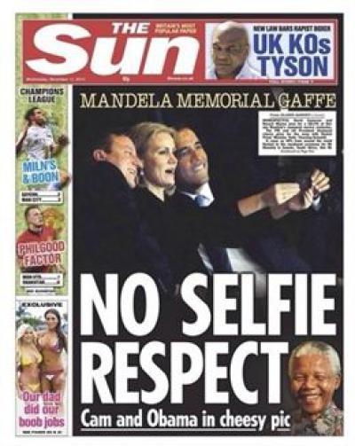 Al otro lado del Atlántico, el New York Daily News ha considerado que Obama dio "un paso en falso" en el funeral al participar en la foto, que el Washington Post ha lamentado que ha distraído del mensaje de elogio del presidente a Mandela durante el acto.
