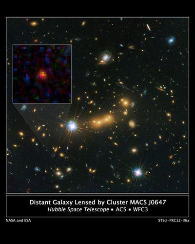Este hallazgo es el último descubrimiento de un programa que utiliza lentes de zoom naturales para revelar galaxias distantes en el universo temprano. El equipo de astrónomos CLASH (Cluster Lensing And Supernova Survey with Hubble) liderado por Marc Postman, del Space Telescope Science Institute en Baltimore, Maryland, utiliza cúmulos masivos de galaxias como telescopios cósmicos para ampliar las galaxias distantes detrás de ellos. Este efecto se denomina efecto de lente gravitacional.