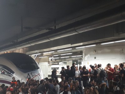 Por megafonía, se anuncia que el servicio de Rodalies ha quedado suspendido en la estación por su cierre y se ha pedido a las personas que se sitúan en las vías que desalojen el espacio, mientras que Rodalies ha informado en un apunte en Twitter que los viajeros que lleguen a la estación podrán salir, y para acceder al servicio ha recomendado acercarse a estaciones cercanas.