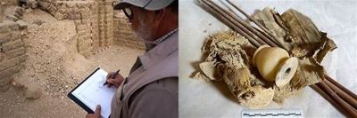 En otra, a pesar de haber sufrido también un expolio, los investigadores ha hallado en perfecto estado dos arcos de 1,70 metros de longitud cada uno, con una cuerda todavía anudada en los extremos. Estaban acompañados de una veintena de flechas completas con la punta de sílex y un jarrito de alabastro envuelto en una tela.