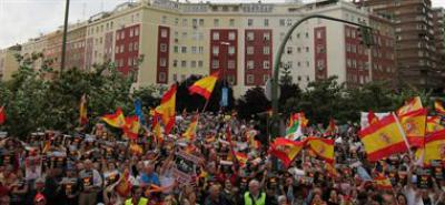 Cientos de personas, convocadas por el movimiento 15-M y otros colectivos bajo el lema "Fuera mafia, hola democracia", han reclamado este sábado en Madrid la dimisión del Gobierno y una "democracia real" frente a la sede del PP, donde ha culminado la marcha improvisada por los asistentes desde la Puerta del Sol. Tras una hora de concentración en la emblemática plaza, símbolo ya del movimiento y en la que se han vuelto a escuchar las habituales consignas del "No nos representan" o "No hay pan para tanto chorizo", los asistentes han iniciado una marcha por el centro de Madrid, cortando a su paso el tráfico de las principales arterias de la capital.