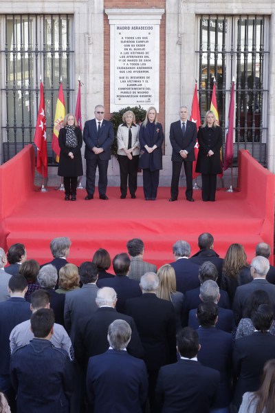 La placa está situada en la fachada de la Real Casa de Correos, sede de la Presidencia regional. Durante todo el acto, a lo largo de cinco minutos, han repicado las campanas de las iglesias de la región y, a continuación, un conjunto de diez violonchelos de la Universidad Alfonso X El Sabio ha interpretado un arreglo del Adagio para cuerdas de Samuel Barber y, finalmente, el Himno Nacional.