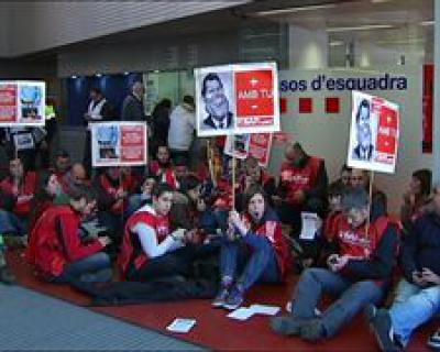 Cincuenta mossos ocupan la comisaría de Plaza España de Barcelona contra los recortes