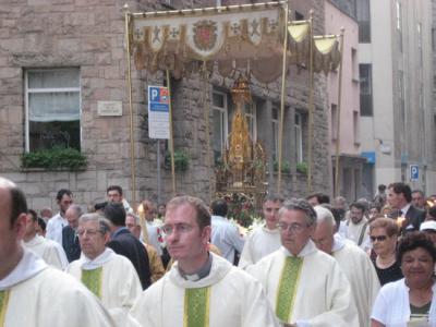 Hemos de adorar a Jesús-Eucaristía y hemos de reconocerlo también en ese sagrario de carne que son los hermanos, especialmente los más desheredados. Venid adoradores y adoremos. La procesión del Corpus no sólo debe ser en este día, y no sólo en lo extraordinario de unas calles engalanadas al efecto. También mañana, también en los días laborables, en el surco de lo cotidiano, los cristianos debemos seguir nuestra procesión de la Presencia de Jesús en nosotros y entre nosotros. Él está ahí, esperando que le llevemos y que le reconozcamos. Aquel que dijo estaré siempre con vosotros, nos dijo también que los pobres siempre los tendríamos. Es la procesión de la vida, en donde Dios y cuanto Él ama nos esperan y nos envían.