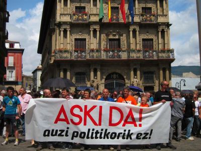 Al término de la protesta, Kiroga ha criticado que "hay un intento de doblegar a la izquierda abertzale, tratar de impedir que este pueblo sea definitivamente libre" y ha opinado que "para eso utilizan la Audiencia Nacional, utilizan pseudo justicia, pseudo tribunales y pseudo condenas".