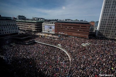 La manifestación se ha convertido en una declaración en defensa de los valores de una sociedad abierta. Además ha tenido lugar en la plaza de Sergels Torg, la más importante de Estocolmo, situada a escasos metros del lugar del atentado.