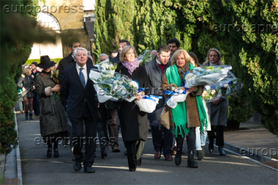 El cementerio de Polloe de San Sebastián ha sido escenario hoy de una ofrenda floral y responso al que fuera teniente de alcalde de la capital guipuzcoana y parlamentario vasco, en el 25 aniversario de sus asesinato. Junto a la tumba de Ordóñez, han estado su viuda, Ana Iribar, acompañada, por primera vez, del hijo de ambos, Javier Ordóñez; el alcalde de la ciudad, Eneko Goia, acompañado del concejal jeltzale Iñaki Gurrutxaga; y los concejales donostiarras del PP Borja Corominas y Mikel Lezama.