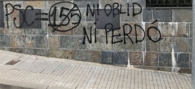 Las pintadas, reivindicadas por los Comités de Defensa de la República, identificaban al PSC con la aplicación del artículo 155 de la Constitución en Cataluña. "Ni olvido ni perdón" por el apoyo de los socialistas a la aplicación del 155, avisan los CDR, que se definen como "ni pasivos ni terroristas: empoderados".