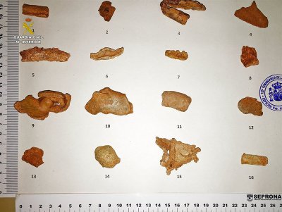 Tras identificar a estas personas y comprobar los daños perpetrados en el yacimiento arqueológico se les intervinieron dieciséis piezas metálicas, que fueron entregadas en la Delegación Provincial de Educación, Cultura y Deportes.