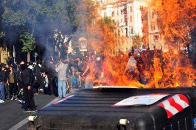 Disturbios y enfrentamientos con la Policía en las manifestaciones de "indignados" de Italia