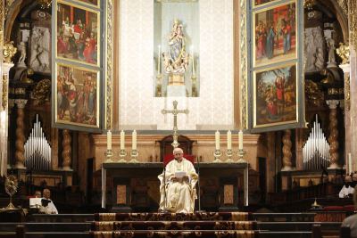 Concluida la misa ha tenido lugar la adoración al Santísimo Sacramento que ha sido colocado sobre el altar mayor y, con los fieles puestos de rodillas, se han ido rezando las distintas preces por España y su unidad, según ha informado el arzobispado.