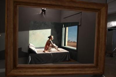 La exposición, que posteriormente viajará a París, incluye como novedad un particular "set cinematográfico" donde el cineasta estadounidense Ed Lachman ha recreado Sol de mañana (1952). Lachman reproduce en tres dimensiones la escena del cuadro, desvelando la utilización de ciertos recursos cinematográficos en las obras de pintor.