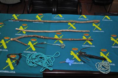 El delegado, que ha estado acompañado del Coronel Jefe de la Comandancia de Melilla, Ambrosio Martín Villaseñor, ha expuesto ante la prensa algunos de los objetos que llevaban los subsaharianos de los saltos del jueves, como un arma blanca, ganzúas, anclas o palos.