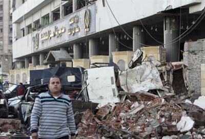 horas después del ataque con bomba ejecutado esta madrugada contra la sede de la Dirección de Seguridad de la gobernación de Dakahlia en la localidad egipcia de Mansura