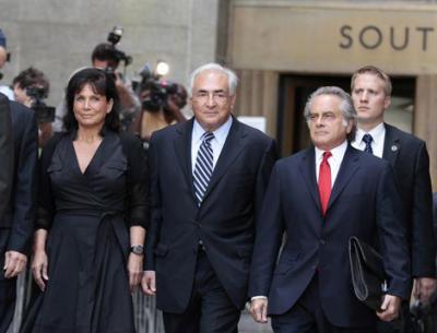 El exdirector gerente del FMI, que renunció al puesto debido a su arresto, compareció ante el tribunal acompañado de su mujer Anne Sinclair y ambos abandonaron el tribunal sonriendo pero sin hacer declaraciones tras conocerse la decisión del magistrado.