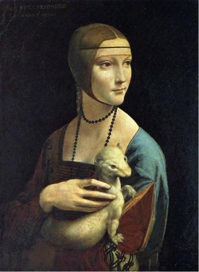 "La dama del armiño" es un óleo sobre tabla pintado en torno a 1490 en el que aparece Cecilia Gallerani, joven de 17 años amante de Ludovico Sforza "El Moro". Junto a "La Ginevra de" Benci (National Gallery, Washington) y "La Gioconda" (Museo del Louvre, París), es uno de los retratos más importantes del artista.
