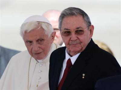 Pasadas las 14.20 horas (hora local), ha llegado al aeropuerto Antonio Maceo de Santiago de Cuba el avión procedente del aeropuerto de Guanajuato (México) que trasladaba a Benedicto XVI a tierras cubanas. El Santo Padre ha sido recibido en las escaleras del avión de la Fuerza Aérea mexicana por el presidente de Cuba, Raúl Castro, y el Arzobispo de Santiago de Cuba y presidente de la Conferencia Episcopal de Cuba, monseñor Dionisio Guillermo García Ibáñez.