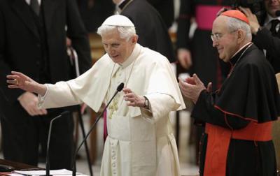 El Papa, que ha agradecido el afecto de los obispos y sacerdotes italianos, ha sido recibido con ovaciones y aplausos por el clero romano en un encuentro en el que tradicionalmente improvisa un discurso y que este año se ha convertido en una de las últimas apariciones antes de su renuncia el próximo 28 de febrero a las 20.00 horas.
