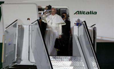 El Papa Francisco se ha despedido de Brasil con un grito a la concordia y a la solidaridad, pilares que ha pedido a la Virgen que refuerce en la sociedad para construir una nueva humanidad, así como con un grito a la dignidad humana. Poco después, hacia las 19.35 horas (las 00.35 horas en España) partía rumbo a Roma a bordo de un A330 de Alitalia.