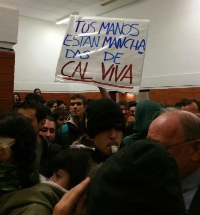 El dirigente socialista aludía así a las acusaciones que lanzó Iglesias contra González en el debate de investidura de marzo, cuando le acusó de tener "el pasado manchado de cal viva". La "cal viva" figuraba este miércoles en una de las pancartas que portaban los radicales que han impedido a González hablar en la Universidad Autónoma de Madrid.