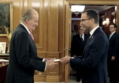 Don Juan ha mantenido este lunes su agenda de la mañana y ha recibido las credenciales de un total de 16 embajadores. Sin embargo, este acto ha modificado su formato habitual y, en vez de celebrarse en el Palacio Real, ha tenido lugar en el Palacio de la Zarzuela y ha sido más corto de lo habitual.