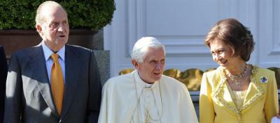Sus Majestades los Reyes de España han recibido en el Palacio de La Zarzuela al Papa Benedicto XVI, en calidad de jefe de Estado. El Santo Padre ha sido recibido por sus Majestados en las escalinatas del palacio, donde también estaban presentes en la escalinata la Infanta Elena, sus hijos, Froilán y Victoria Federica, y los Príncipes de Asturias con las Infantas Leonor y Sofía. Se trata de una visita de cortesia.