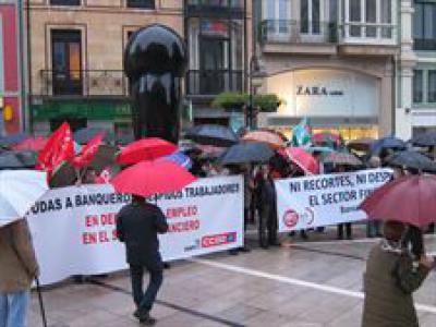 Empleados de banca se concentran contra el ERE que se cierne sobre 170 trabajadores de Bankia y Novagalicia en Asturias