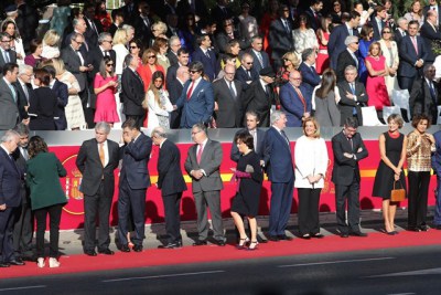 Eso sí, no ha estado el presidente catalán, Carles Puigdemont, ni tampoco el lehendakari ni la presidenta de Navarra. A la recepción no se ha quedado Mariano Rajoy que, nada más saludar a los Reyes, se ha marchado con la ministra de Defensa, María Dolores de Cospedal, a la base de Los Llanos (Albacete), donde se ha estrellado un avión Eurofighter que participó en el desfile, causando la muerte al piloto.