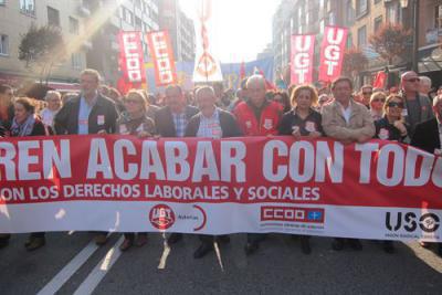 Se trata del acto central en Asturias de esta jornada de huelga convocada por los sindicatos UGT, CCOO y USO, que han cargado contra la reforma laboral.