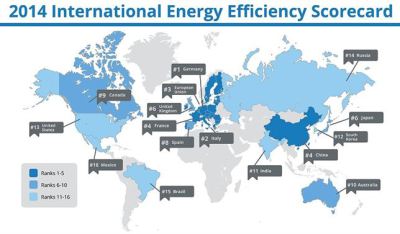 El informe ha analizado la trayectoria en materia de eficiencia energética en 16 economías avanzadas del mundo y ha elegido a Alemania como la más eficiente con una puntuación de 65 sobre 100. Le siguen Italia (64 sobre 100), la UE en su conjunto (63 sobre 100), China (61 sobre 100), Francia (61 sobre 100), Japón (57 sobre 100) y Reino Unido (57 sobre 100).