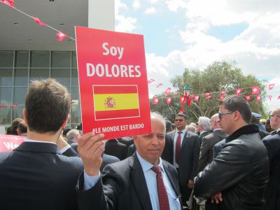 Algunas personas mostraban pancartas con los nombres de las víctimas, como el tunecino que trabaja de chófer para la Embajada española, que blandía un cartel con el lema 'Je suis Dolores' (Soy Dolores) en recuerdo de una de las dos víctimas españolas.