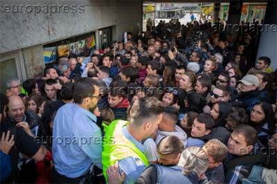 Al salir, los concentrados han encendido botes de humo y los han lanzado en dirección a los asistentes, que estaban a casi 20 metros de distancia, y con el cordón policial de por medio, y los botes no han alcanzado a nadie.