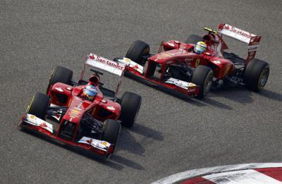Los de Ferrari se colocaban en las primeras posiciones pero las estrategias de los Red Bull y del McLaren de Jenson Button complicaron la situación a la escudería italiana, aunque ninguno fue capaz de seguir el ritmo de Alonso, que caminaba con paso firme hacia su primera victoria del año.