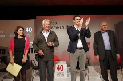 Los históricos dirigentes socialistas --antiguos amigos que no compartían escenario desde que coincidieran en un mitin en 2011-- han elogiado la tarea de los socialistas que siguieron defendiendo sus ideas en los difíciles años de la dictadura y han alabado el pacto constitucional de 1978. Guerra ha defendido que están "equivocados" quienes critican este acuerdo, porque no se podía haber ido ni "más lejos" ni "más cerca" de donde se llegó.
