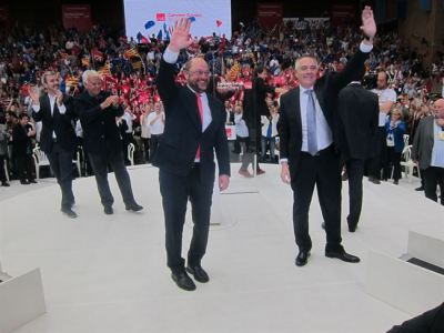 En el mitin central de campaña del PSC ante más de 3.000 personas, ha felicitado al líder del PSC, Pere Navarro, por apostar por la vía federal frente a soberanistas y a inmovilistas: "Pere, insiste. Se pasan momentos más o menos difíciles, pero el diálogo la centralidad y la reforma será lo que se abrirá paso".